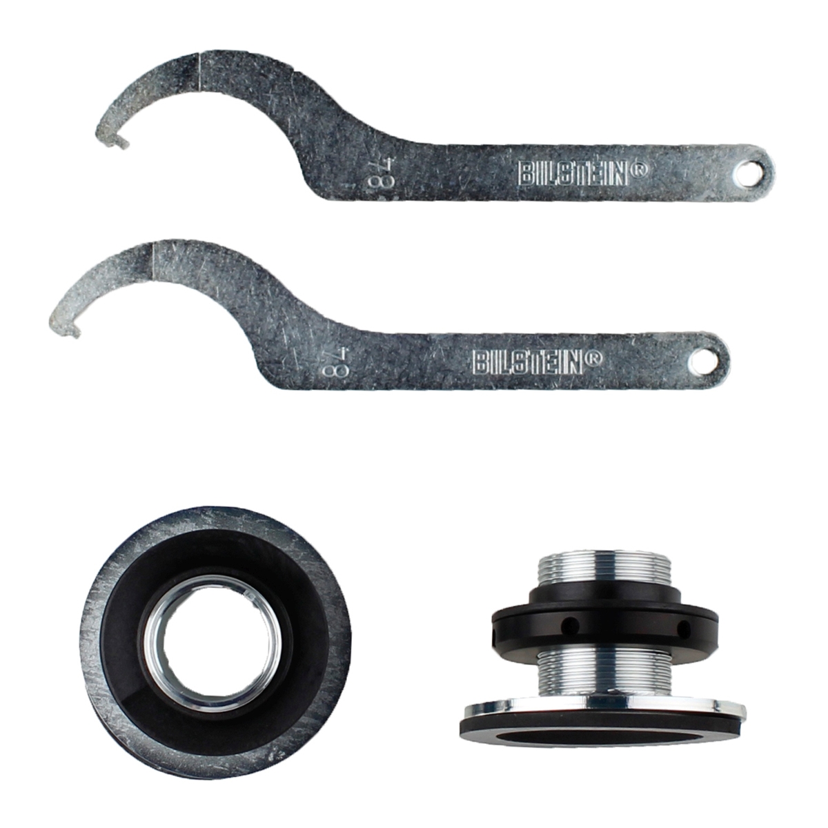Innstilling og justering av høyde med en BILSTEIN coilover er ikke noe problem, da den justerbare fjærskål og kontramutter er fremstilt av anodisert aluminium. Fjærskålen låses med en aluminiummutter i fjærbeinets gjengestykke og ikke med en pinolskrue, hvilket signaliserer den høye kvalitet.