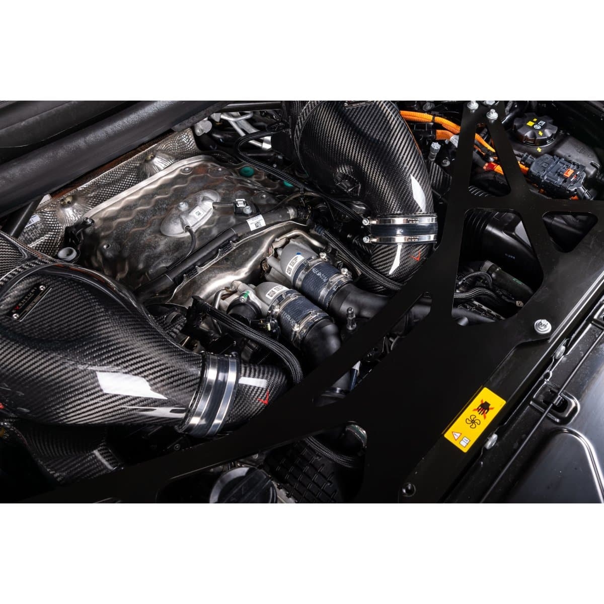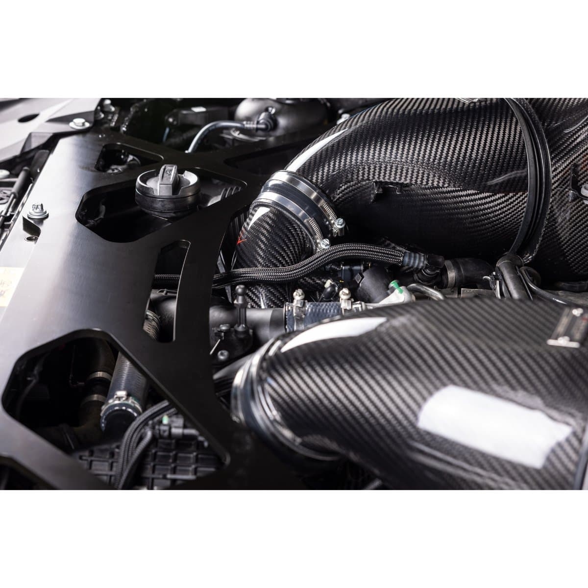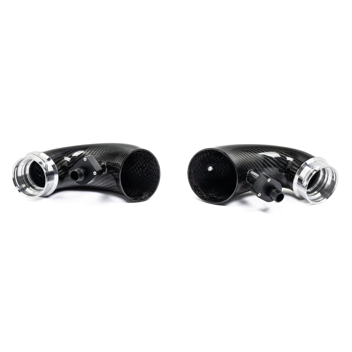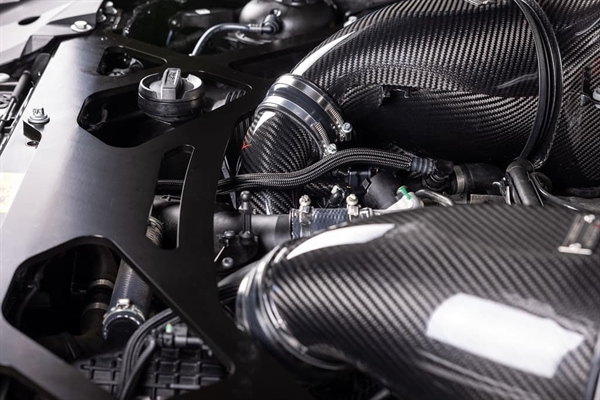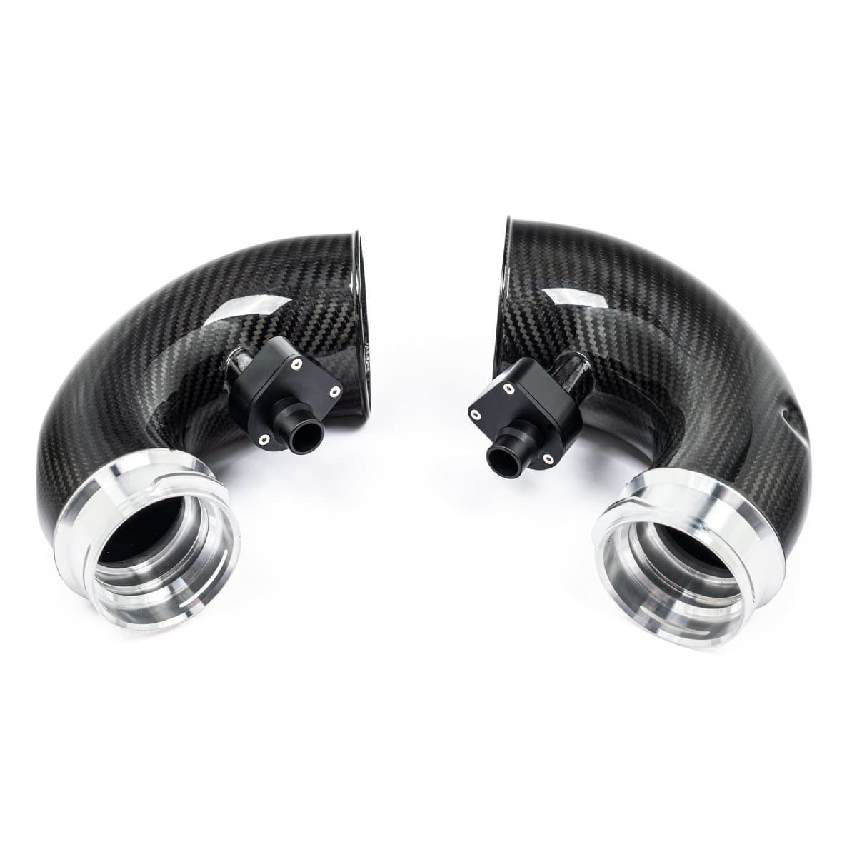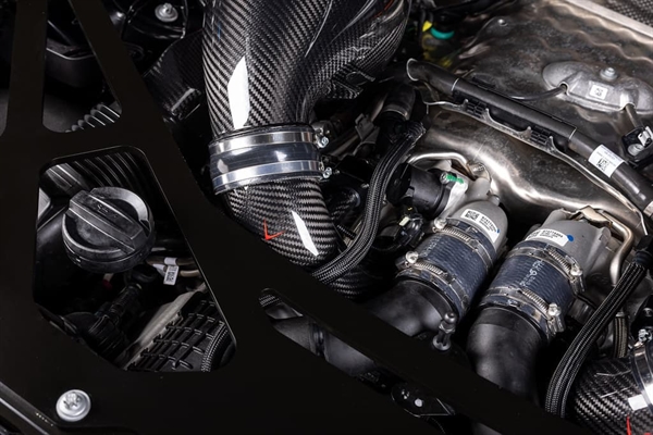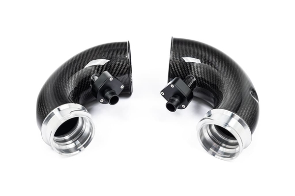 Vi presenterer det perfekte tilskuddet til vårt X5M, XM luftinntakssystem for å optimalisere luftstrømmen helt frem til turboene. Våre karboninntak har større volum enn de originale ved å opprettholde en større diameter hele veien til turboene. De originale innsugsrørene smalner inn rett etter tilkoblingen til luftinntaket, noe som skaper en restriksjon – spesielt ved høyere ladetrykk. Vi har fjernet denne begrensningen og designet kurvene så jevne som mulig, slik at turboene kan arbeide med redusert motstand. Laget av prepreg karbonfiber med CNC-maskinerte flenser, gir inntakene også et estetisk løft i motorrommet.