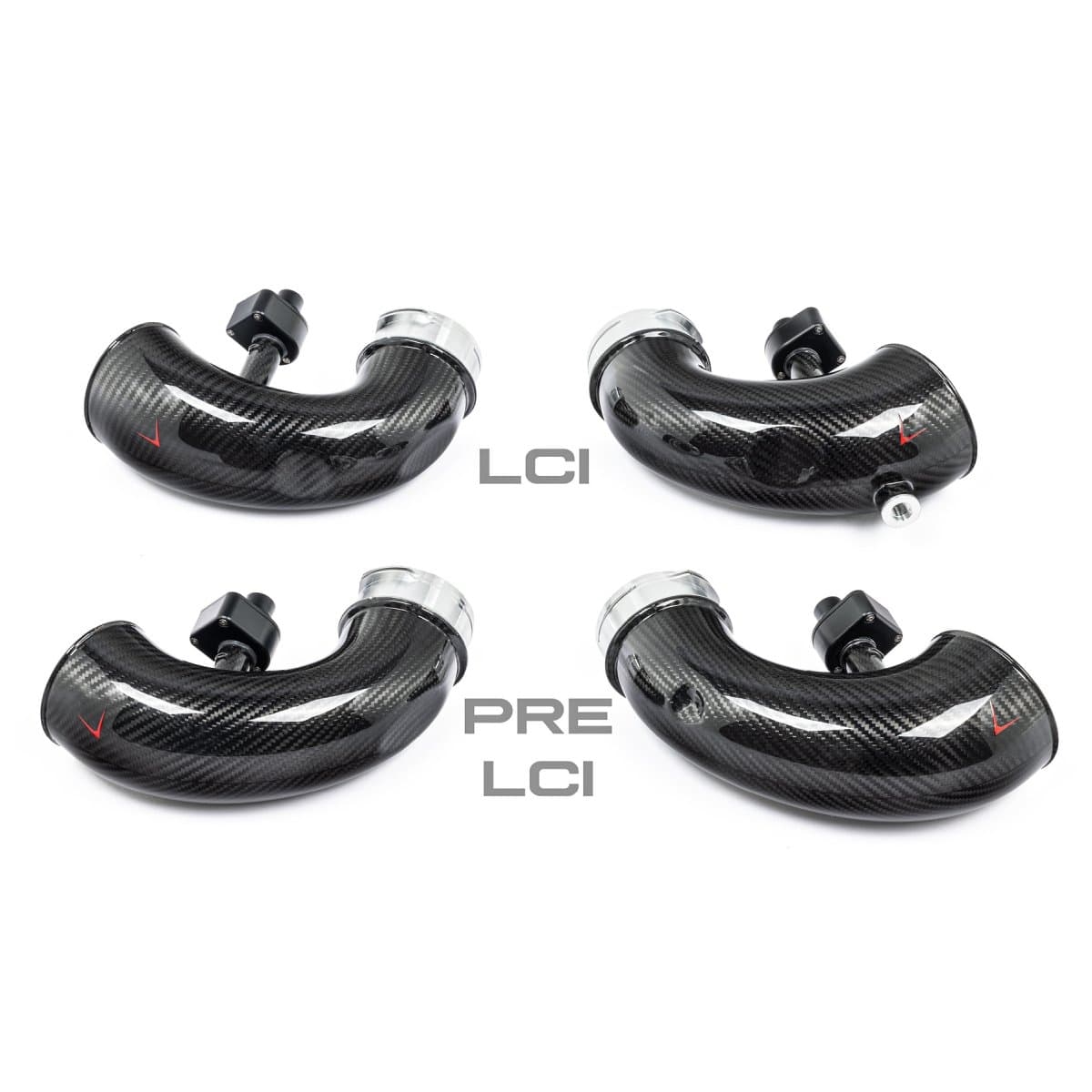 Det finnes forskjellige inntak for LCI og Pre-LCI biler. Vi har utviklet to spesifikke sett med ulike kurver og en ekstra sensorfeste på LCI-versjonen.