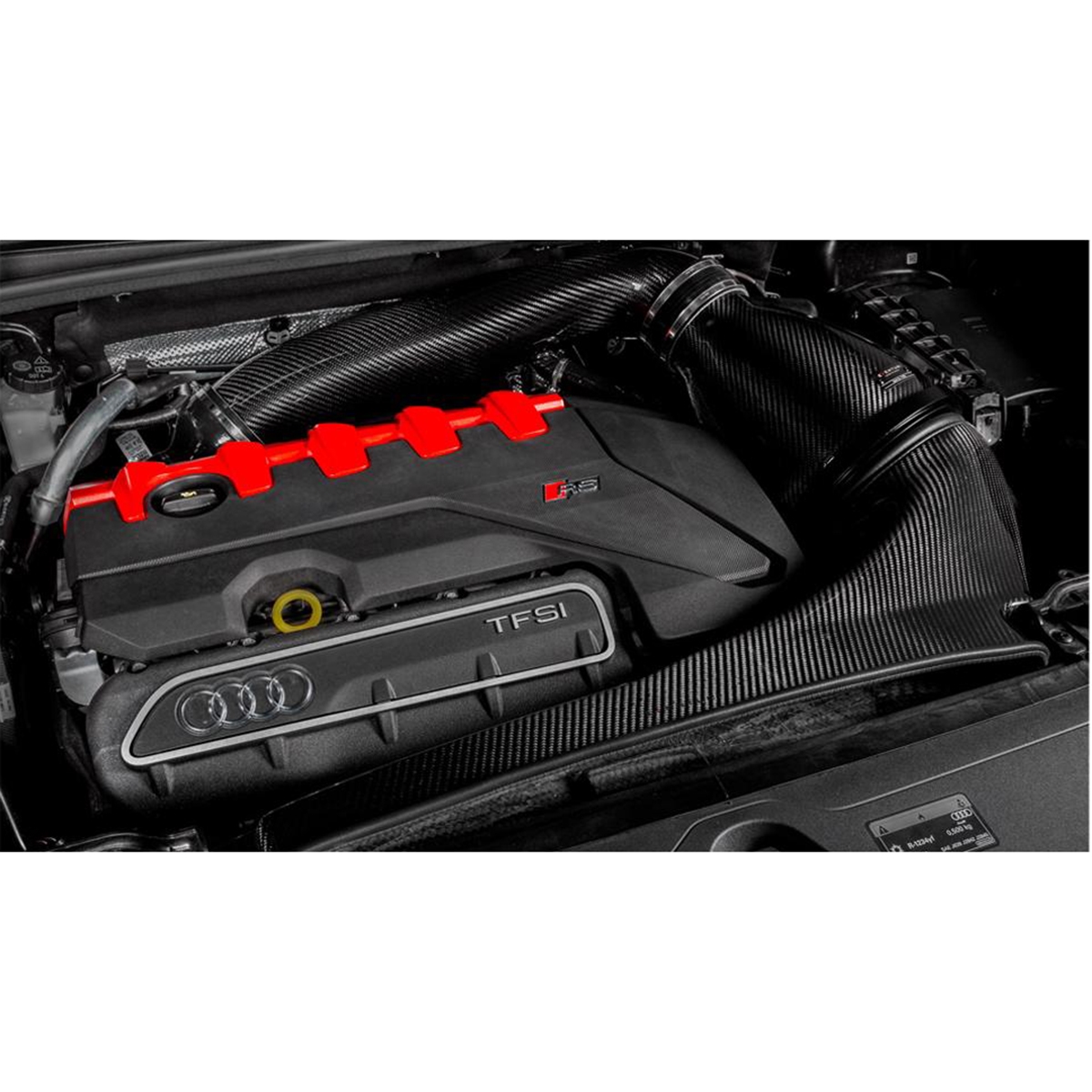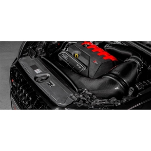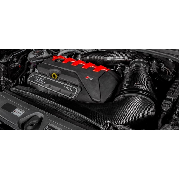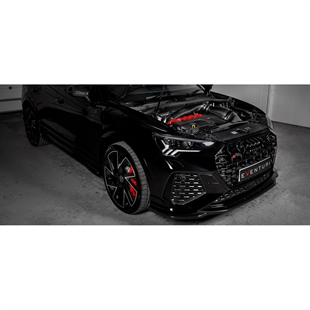 Inntaksrøret har en innvendig diameter på 103 mm eller litt over 4" og har en jevn kurve fra filterhuset helt til turbo‑inntaket. Selve filteret er spesielt designet for dette inntaket og har en ytre diameter på 210 mm eller 8,3" med en filtreringsflate over 130 000mm². Det patenterte Venturi‑huset er designet for å gi maksimal intern volum innen tilgjengelig plass i RSQ3 motorrom og gir laminær luftstrøm til turborøret. Til sist tetter kanalen filteråpningen mot frontens slam‑panel, men er ikke begrenset av kun den originale luftinntaks‑åpningen. Vi har hevet fronten av kanalen for å nå gi en ekstra åpning bak panseret som tilsvarer et ekstra 7" diameter hull for luftinntak. Det resulterende systemet har evne til å levere 840 CFM ved 28" H₂O samtidig som inntakstemperaturene holdes minimale med det forseglede designet.