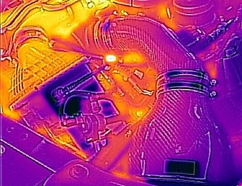 Å ha en effektiv kaldluftsleveranse til filtrene er en essensiell del av vårt design. Bare å ha noen varmeskjold på plass er ikke en effektiv måte å unngå oppvarmet luft i filtrene med mindre skjoldene skaper et lufttett skall rundt filtrene. Scoops og skjold i vårt system kombineres for å levere omgivelsesluft til filteråpningene og opprettholde lav innsugningstemperatur. For å illustrere effektiviteten av dette systemet, har vi satt sammen en video som viser vår innsugsdesign på F83 M4 som har samme scoop/kanaldesign: