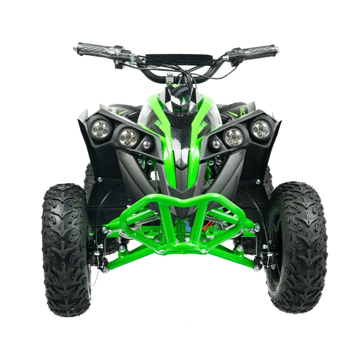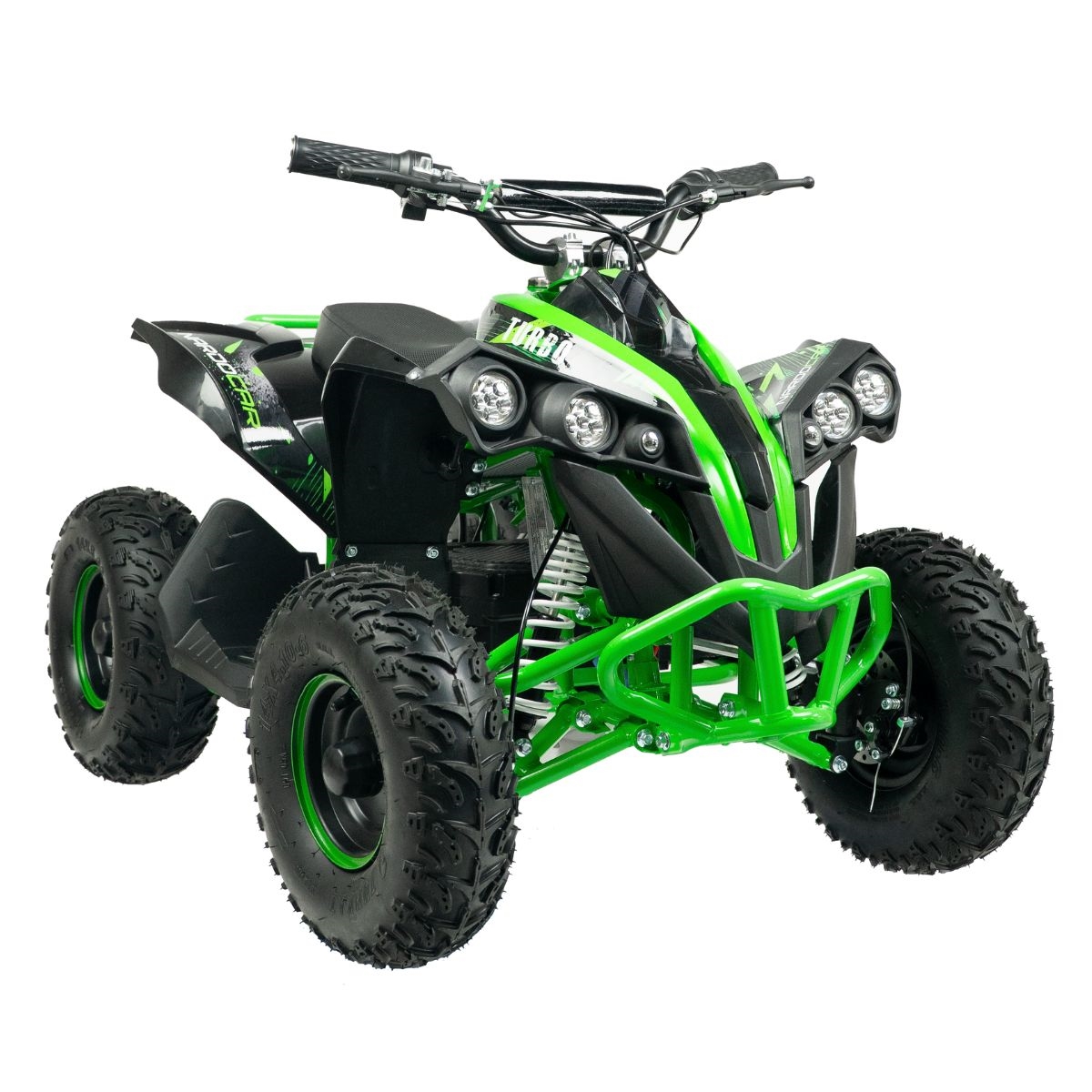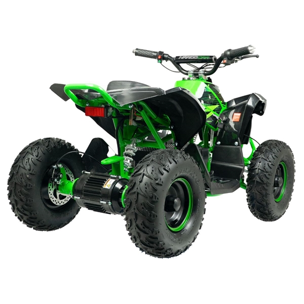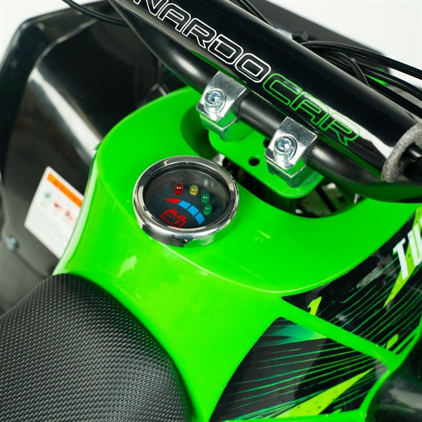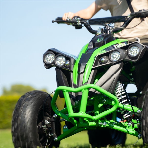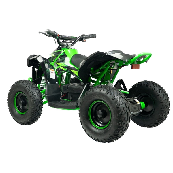 ATV-en er en fartsmaskin som veier 55 kg og når høye hastigheter for en kraftig el-ATV-opplevelse. ATV-en er konstruert med en metallramme og et dobbelt bremsesystem med skivebremser som sikrer stabil og funksjonell bremsing under alle terreng- og værforhold. En kvalitet du aldri før har opplevd i en elektrisk ATV.