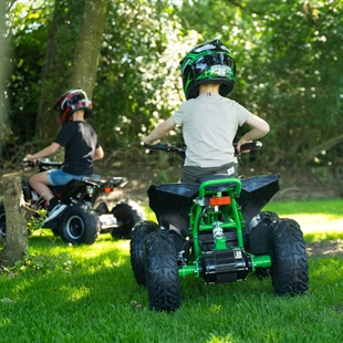 En førsteklasses elektrisk ATV for barn som kan håndtere alle typer terreng uten motorstøy. Gress, grus, stein, jord – alt det en vanlig bensindrevet ATV kan håndtere.