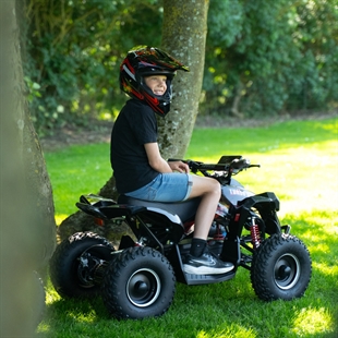 En topkvalitets elektrisk ATV til børn, der kan klare alle terræner uden motorstøj. Græs, grus, sten, jord – alt, hvad en almindelig benzin ATV kan klare. For at sikre maksimal sikkerhed og kontrol, er Mini EL ATV 1200W Limited Edition udstyret med en indbygget hastighedsbegrænser. Denne funktion kan justeres til to forskellige hastighedsniveauer eller helt fjernes for maksimal hastighed. Betjeningen kræver en nøgle, hvilket forhindrer børn i at ændre indstillingerne uden opsyn.