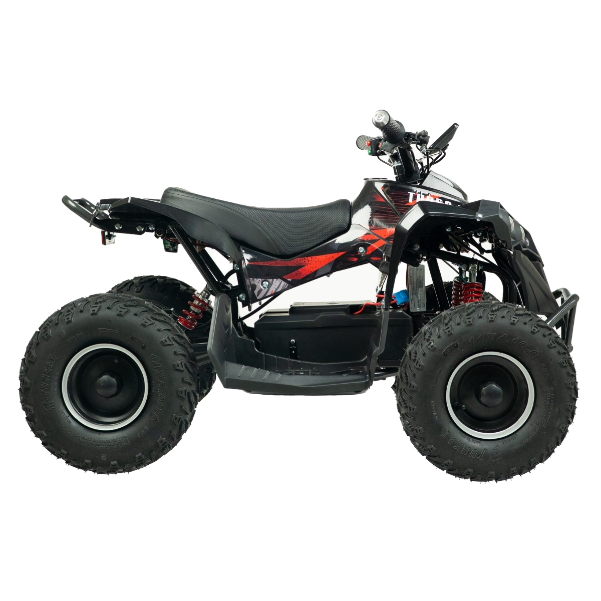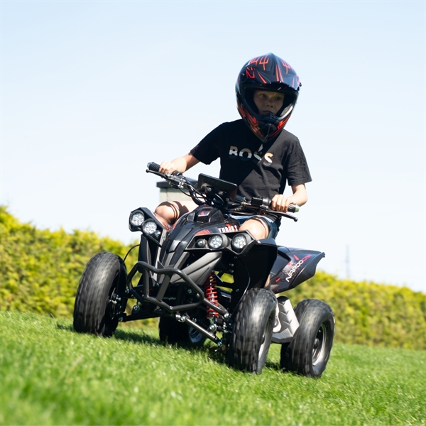 For at sikre en komfortabel og stabil kørsel, er ATV’en udstyret med forbedrede støddæmpere, der er designet til at håndtere selv det mest ujævne terræn. Den hydrauliske bagbremse giver forbedret kontrol og sikkerhed, hvilket gør det lettere at håndtere ATV’en under alle forhold. Den robuste batterikasse beskytter batteriet bedre mod stød og skader, hvilket øger holdbarheden og pålideligheden.