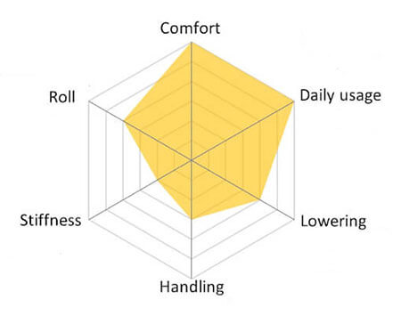 En perfekt balanse mellom komfort og sportslige egenskaper. Ideell for daglig kjøring med mulighet for justerbar senking.