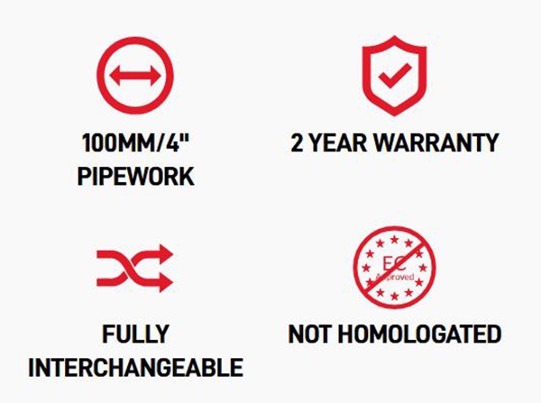 Dette eksosanlegget kan leveres i en ikke-resonert versjon (dette alternativet fjerner den originale lyddemperen og gir høyere lyd).