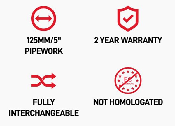Når systemet er montert, sørger akustisk optimaliserte lyddempere — med spesialutviklede interne løsninger (på systemer med midtdemper eller bakpotte) — samt presis CNC-mandrelbøyd rørføring for mer effektiv utblåsning av avgasser. Resultatet er forbedret effektlevering, raskere gassrespons og redusert vekt takket være helrustfri konstruksjon. Systemet er utviklet for maksimal holdbarhet, selv under krevende forhold.