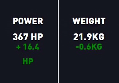 Effektforskjell 350,6 Hk 367 Hk +16,4 Hk