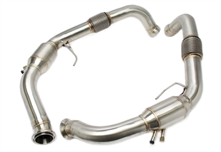 TA-Technix downpipe til Porsche Panamera S/4S Type 971. En downpipe er også kjent som et forrør og er den delen av eksosanlegget som monteres på motoren, rett etter turboladeren. Formålet med en downpipe er å gi en mer effektiv flyt av eksosgass fra turboen og bakover i systemet.