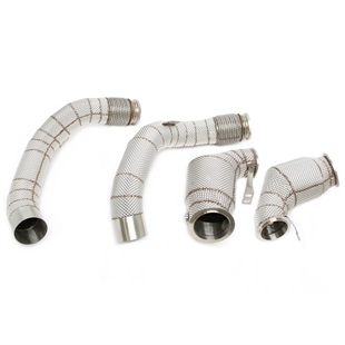 TA-Technix downpipe til BMW 8 Serie M8 G14/G15/G16 (F91/F92/F93). En downpipe er også kjent som et forrør og er den delen av eksosanlegget som monteres på motoren, rett etter turboladeren. Formålet med en downpipe er å gi en mer effektiv flyt av eksosgass fra turboen og bakover i systemet.